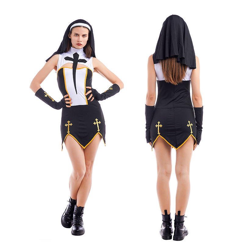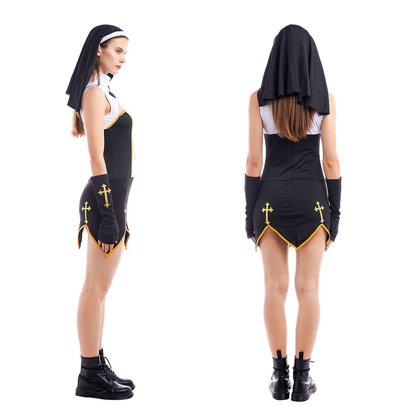 Feature highlights: This Women Halloween Costume is a sexy adult nun costume made of polyester, perfect for Halloween parties and cosplay events.