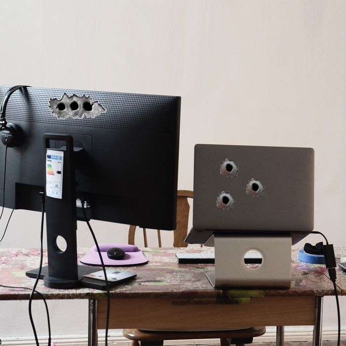 The Beistle Bullet Holes Peel 'N Place sticker is a 12" x 15" vinyl decal designed for easy application in any home décor setting.